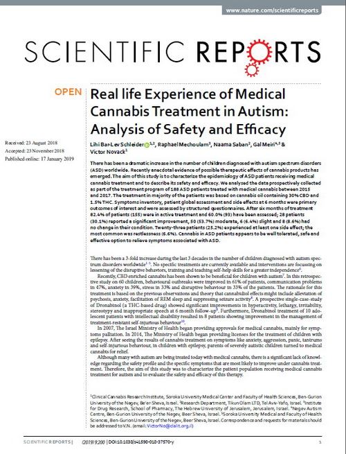 7. Aran A, Cassuto H, Lubotzky A, Wattad N, Hazan E “Brief Report: Cannabidiol-Rich Cannabis in Children with Autism Spectrum Disorder and Severe Behavioral Problems-A Retrospective Feasibility Study” (Σύντομη έκθεση: Πλούσια σε κανναβιδιόλη κάνναβη σε παιδιά με διαταραχή στο φάσμα του αυτισμού και σοβαρά προβλήματα συμπεριφοράς – Αναδρομική μελέτη σκοπιμότητας) J Autism Dev Disord. 2019 Mar;49(3):1284-1288.